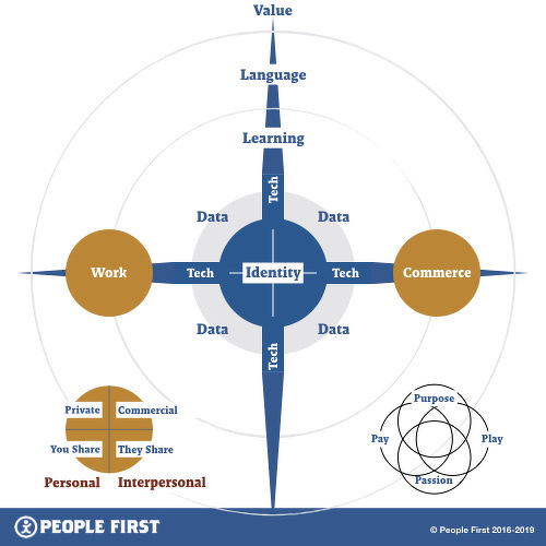The People First Business Equation is built through the relationships and interactions between 8 pillars ⦠Identity, Data, Technology, Language, Learning, Work, Commerce and Value.