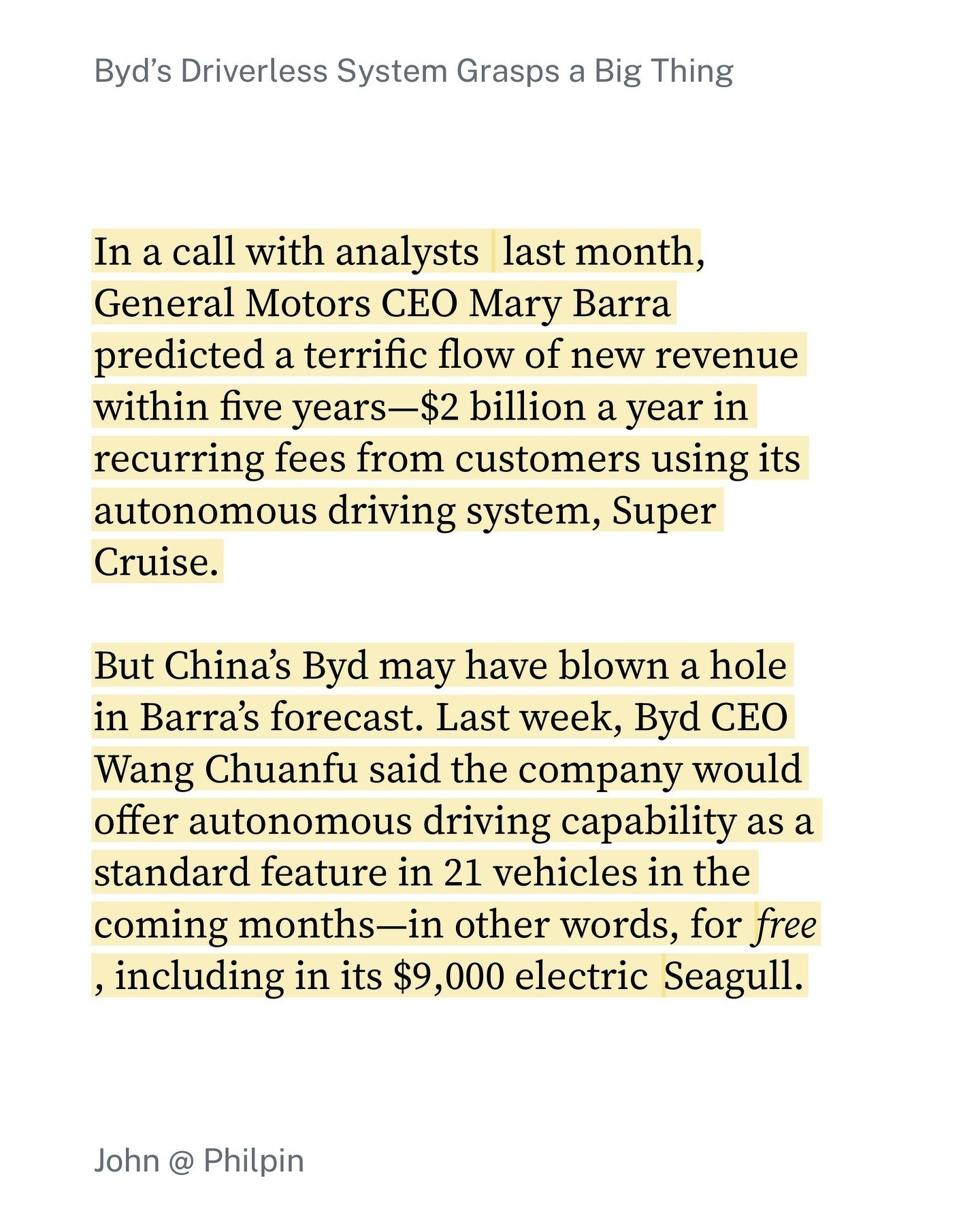 First it was Deepseek - and now itâs cars. ð Looks like China are doing it again. ⦠via The Information. readwise.io/reader/sh…