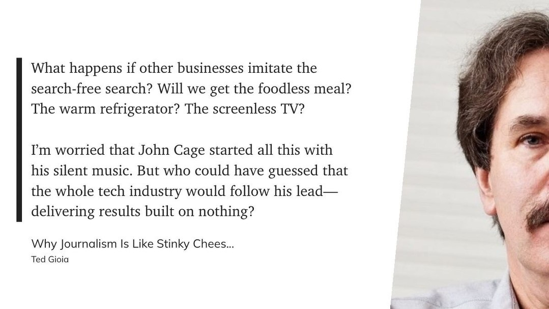 ð Why Journalism Is Like Stinky Cheese - by Ted Gioia www.honest-broker.com/p/why-jou…