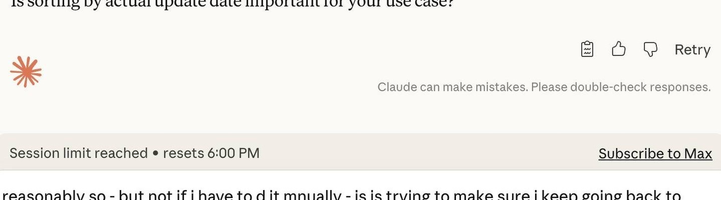 I donât get this with OpenAI - and unclear why I get it from Anthropic - I am paying for both right now - but one of them is going to have to go - and increasingly it looks like it will be Claude - particularly with this on top of the 90% fail in understanding prompts today.
